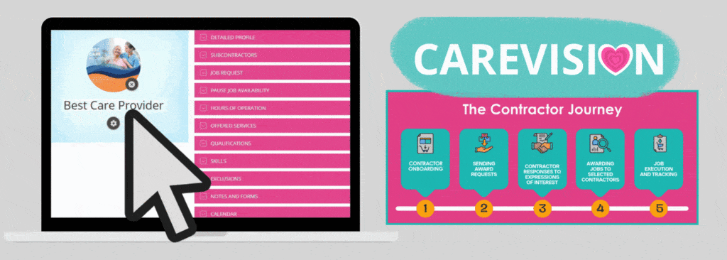 This care platform makes it easy to get the right third-party contractors for your clients while also remaining compliant with Support at Home standards. The Contractor Journey starts off with Contractor Onboarding and ends with Job Execution and Tracking. You can follow the step-by-step guide at Contractors by CareVision.